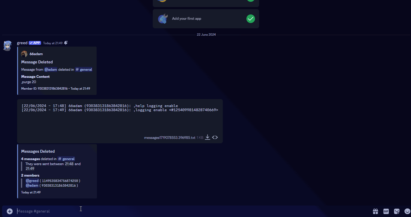 logging enable #general